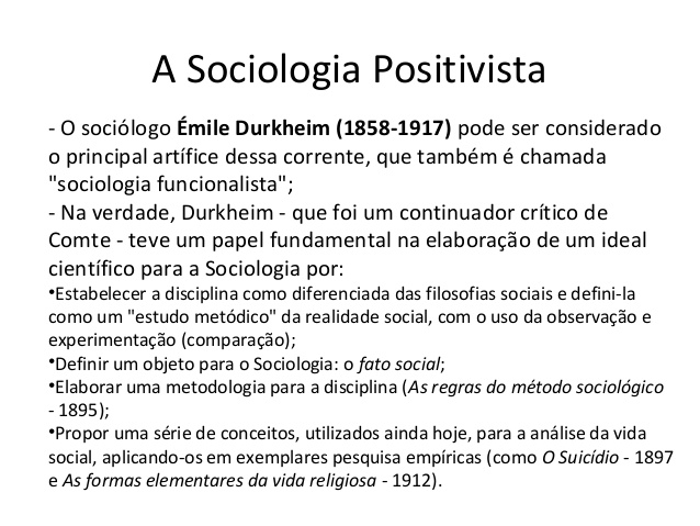Ele desenvolveu as bases da sociologia tomando como base o positivismo. O positivismo é marcado pelos métodos científicos de investigação para a explicação dos fenômenos naturais. Esses métodos científicos também foram e são usados na sociologia.