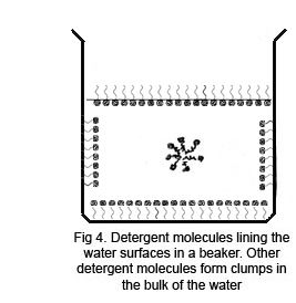 Ao adicionar um tensoativo sobre a água, suas moléculas formam um arranjo ordenado