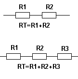 Na resistência em série, a resistência equivalente (resistência do conjunto inteiro) será a soma das resistências: