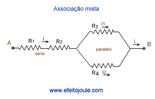 As resistências em um circuito podem ser em série, em paralelo, ou os dois (associação mista).