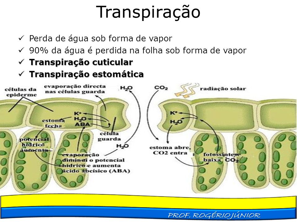 As folhas recebem luz solar, esquentam-se, e liberam água. Essa liberação de água funciona como uma sucção de seiva bruta (xilema)