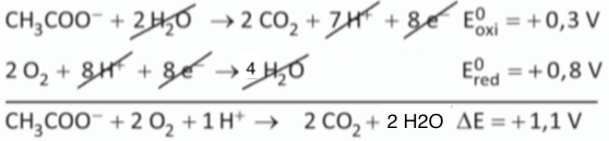 2 CO2 + 7H+ + 8e– → CH3COO– + 2H2O E°’ = -0,3 V