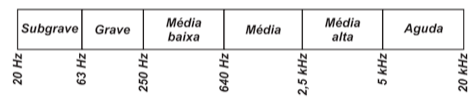 Em frequências baixas (20 a 2000 Hz) – Som grave até frequência média baixa
