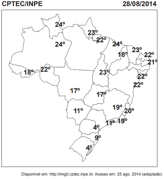 Figura 1 Mínimas – Quinta-feira CPTEC/INPE 28/8/2014