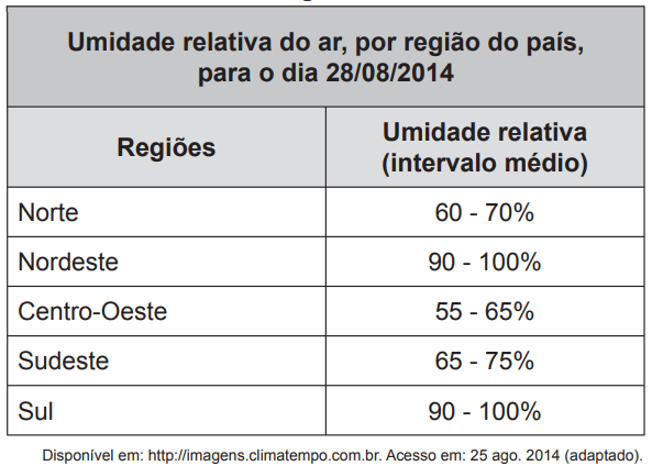 Umidade relativa do ar, por região do país, para o dia 28/8/2014