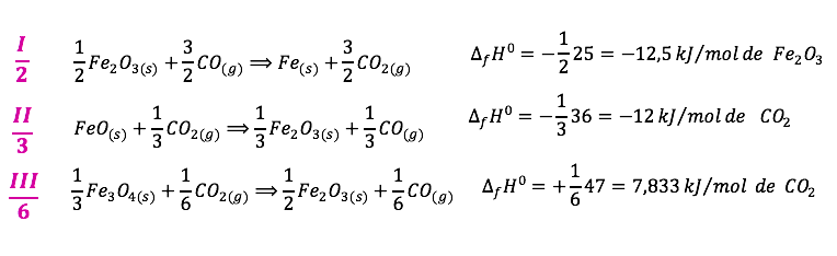 Como sabemos isso? Veja que queremos 1FeO, então pra isso teríamos que dividir II por 3. A partir da decisão sobre a equação II fazemos as duas outras (I e III).
