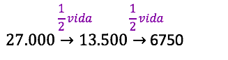 O enunciado nos fala que há 6750 emissões beta por hora. Então teríamos que dividir por dois ciclos de meia vida: