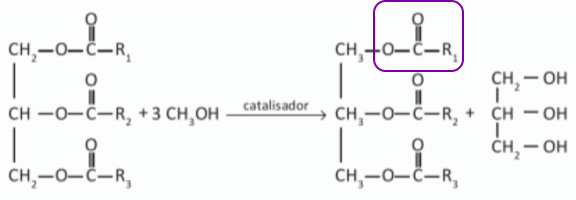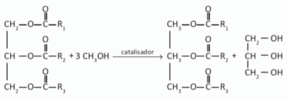 O biodiesel é um biocombustível obtido a partir de fontes renováveis, que surgiu como alternativa ao uso do diesel de petróleo para motores de combustão interna. Ele pode ser obtido pela reação entre triglicerídeos, presentes em óleos vegetais e gorduras animais, entre outros, e álcoois de baixa massa molar, como o metanol ou etanol, na presença de um catalisador, de acordo com a equаção química: