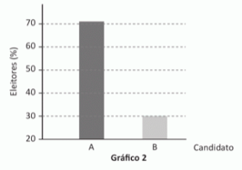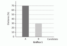 O resultado de uma pesquisa eleitoral, sobre a preferência dos eleitores em relação a dois candidatos, foi representado por meio do Gráfico 1.