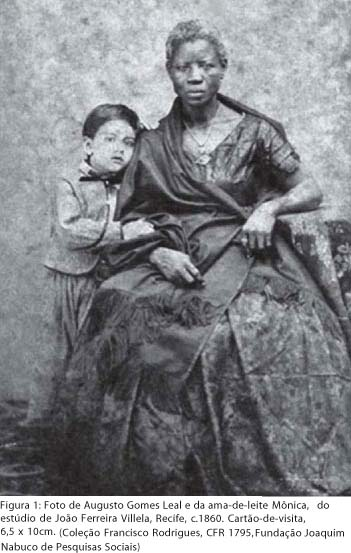 Fotografia de Augusto Gomes Leal e da ama de leite Mônica cartão de visita de 1860