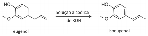 73 O eugenol, extraído de plantas, pode ser transformado em seu isômero isoeugenol, muito utilizado na indústria de perfumes. A transformação pode ser feita em solução alcoólica de KOH.