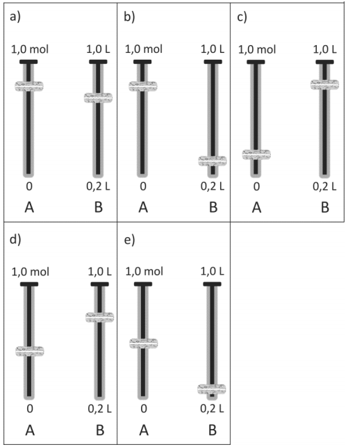 O estudante escolheu um soluto e moveu os cursores A e B até que o mostrador de concentração indicasse o valor 0,50 mol/L. Quando esse valor foi atingido, os cursores A e B poderiam estar como mostrado em