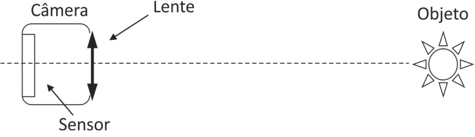 Câmeras digitais, como a esquematizada na figura, possuem mecanismos automáticos de focalização.