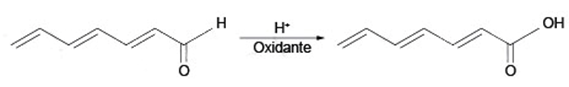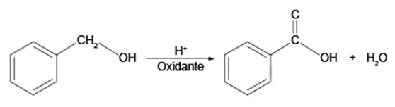 Já os compostos da letra B (Fenilmetanol ou álcool benzílico) e da letra C (2,4,6-heptatrienal) oxidam de acordo com as seguintes reações: