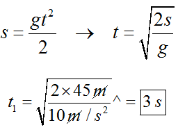 t1 = √((2 x 45) / 10) = √(90/10) = √9 = 3 s