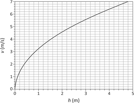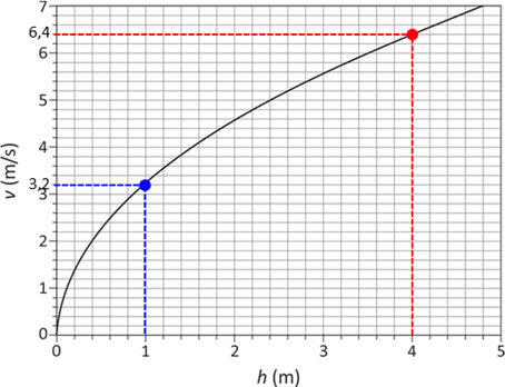 Ondas na superfície de líquidos têm velocidades que dependem da profundidade do líquido e da aceleração da gravidade, desde que se propaguem em águas rasas. O gráfico representa o módulo v da velocidade da onda em função da profundidade h da água.