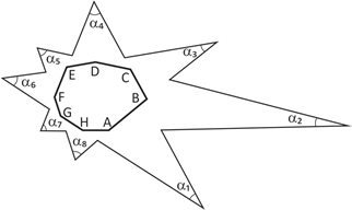 Prolongando se os lados de um octógono convexo ABCDEFGH, obtém se um polígono estrelado, conforme a figura.