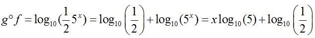 gof(x) = g(f(x)) = log10 f(x) = log10 ((1/2).5x)