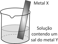 Na adição de um pedaço de metal a diferentes soluções contendo sais de outros metais pode ocorrer a reação de deslocamento (simples troca) caso o metal adicionado seja mais reativo(maior potencial de redução) que o cátion metálico da solução. Nesse caso, o cátion reduzirá, depositando-se sobre a amostra adicionada e o metal oxidará, passando para a solução.