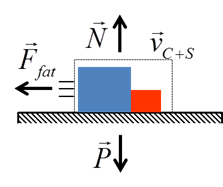 Conforme o enunciado, após a colisão os veículos deslizarão como um único bloco com velocidade vC+S. Desenhando o diagrama de corpo livre desse bloco: