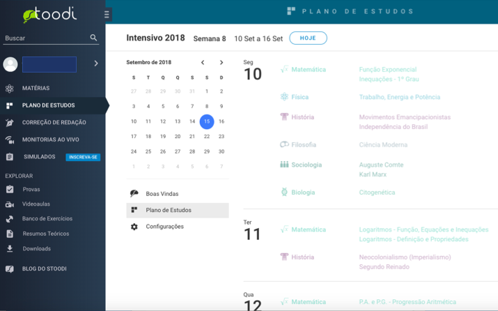 Quando você assina, você pode criar seu plano de estudos com base em quanto tempo você tem até a prova e os conteúdos do Stoodi.